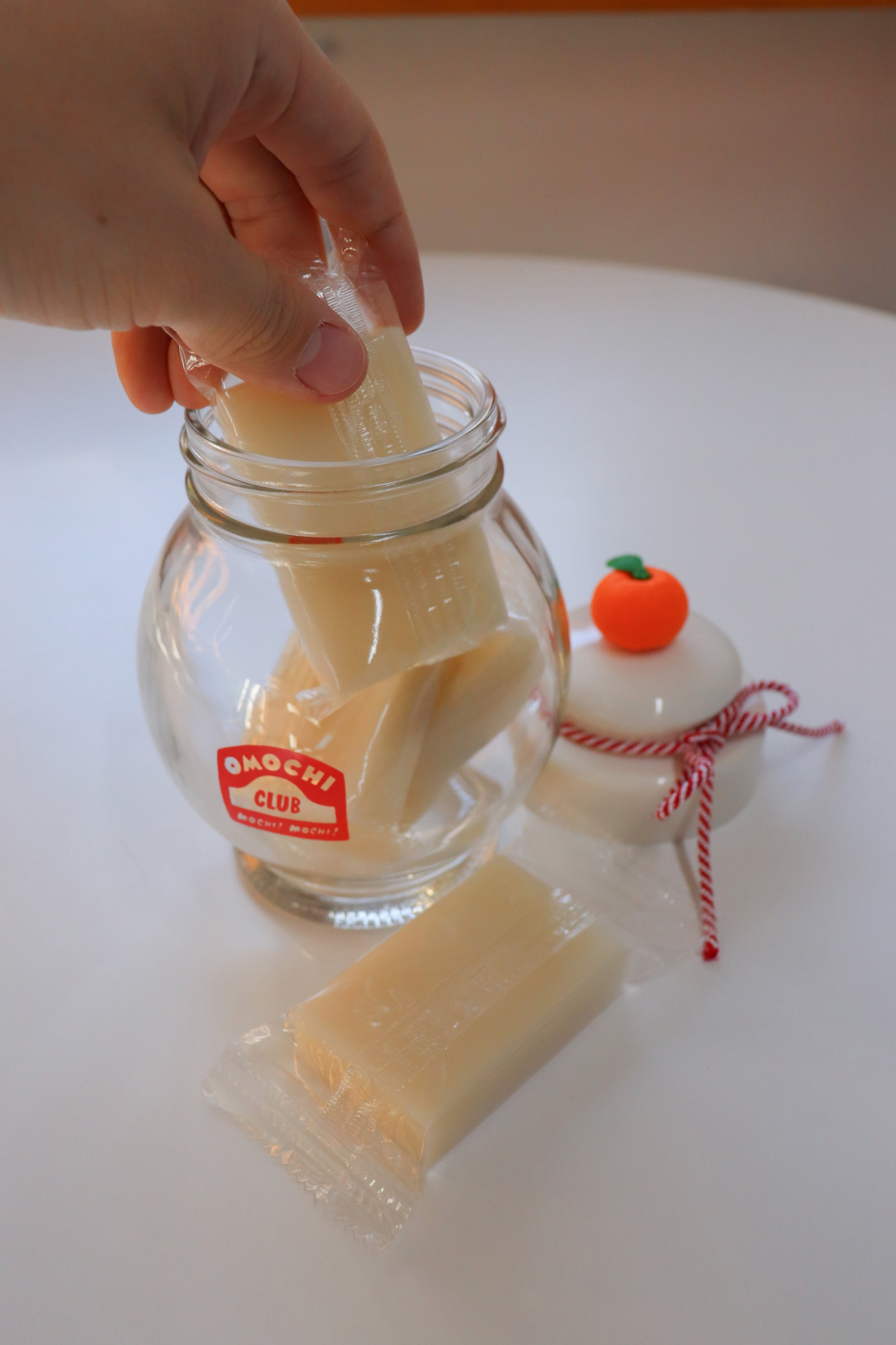 OKG×OMC!!! 代表の大川がビンモッチと名乗りメンバーとして活動しているsenkiya OMOCHI CLUB。大川が以前から温めていたアイデアを見事グッズに昇華。キャップに橙を乗せたらあらビックリ!毎年使える鏡餅に大変身!しかも蓋の内側が収納スペースになっているので、お正月以外の使用も餅論OK!365日OMCを味わえる一品となっております。(専用化粧箱入り)